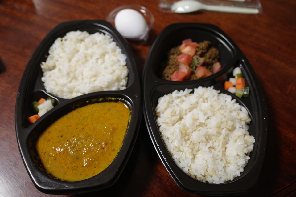 定番のキーマカレーには半ゆで玉子付き。時期限定のポークカレーもテイクアウト可となってたのでそちらも。細かく刻んだ野菜からの甘みもあって全体に優しい味なのですが、スパイスもよく効かせてあるので結構辛くもあります。基本は欧風なんだろうけどバター類など控えめのようでヘルシーな感じ。また買いに行こう。