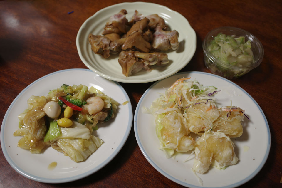 八宝菜、エビマヨ、豚足を買いました。本格的な味付け。冷えても美味しい八宝菜て難しいんじゃないかなあ。エビマヨは甘く、豚足は五香粉がいい香り。小さい器の生ザーサイは、肉まんの高野で買ったものでした。板橋はカレーと並んで中華も多いので持ち帰り日替わりでも切れることがないなあ。