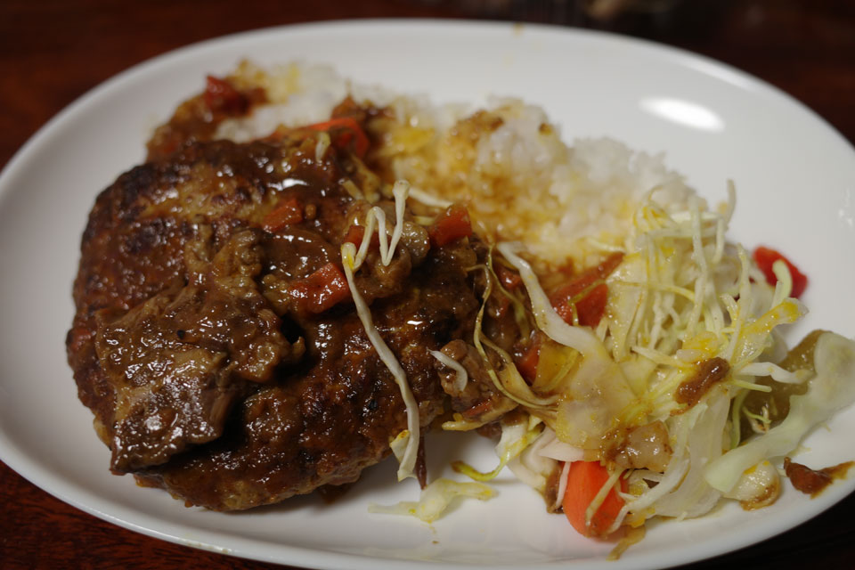 これはすごくお肉の味がしっかりしたハンバーグ!シェフはつばめグリルで修行した方とのことで、なるほど。ご飯もちょっと普通と違う気がしたな、よく合うものでした。これで500円は安すぎ。