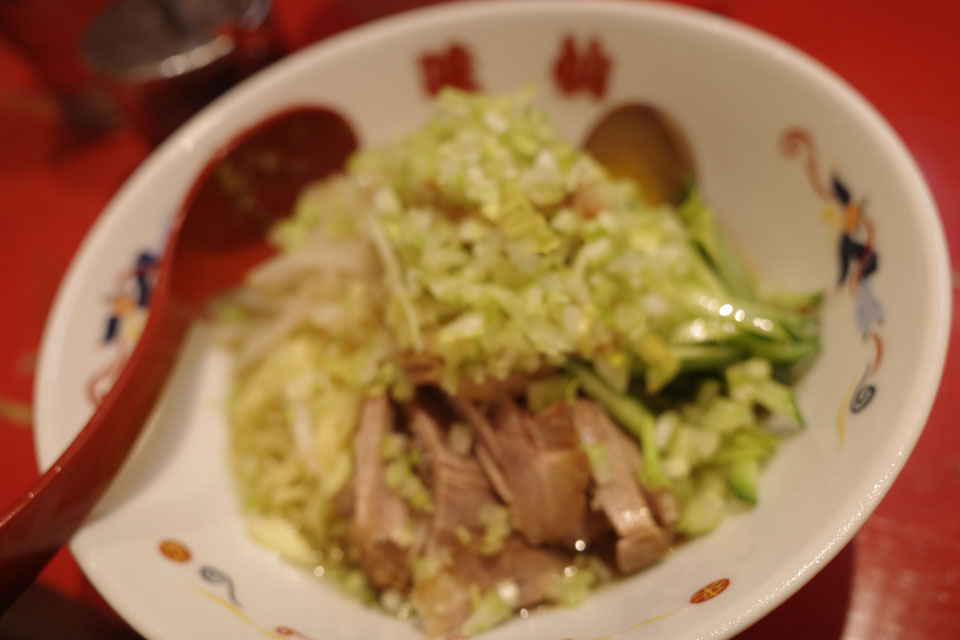 チャーシューもたっぷりですがクラゲも入っていい感じです。