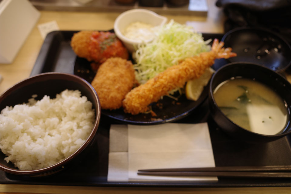 カニクリームコロッケ自体は後でソースかけることを前提としてるせいか、塩味はあっても控えめ。でも十分な味。このままでもいいのではないか。タルタルもそれをつけるとまるで全部タルタル味になってしまうし。それよりもそもそもトンカツなどの揚げ物専門店なので、テーブルには美味しいとんかつソースがあるわけです。これをつけてももちろんいい。どころか、高級店でなくチェーン店で自分が求める味はそのとんかつソース味なのではないか。トマトソース、タルタルソース、とんかつソース。どれが正しいのだろう、いやそもそもそれに正解なんてものはないということはわかってるんですが、本来はどういうものだったのか。