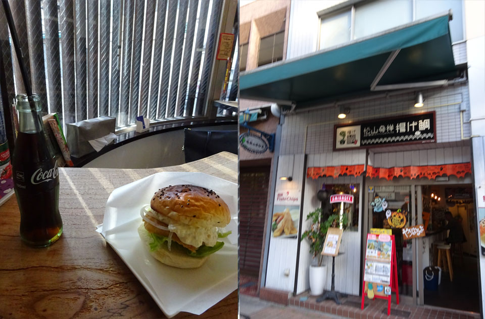 開いてたのが揚げ鯛バーガーなるもの。あれ、これはこれで美味しい。普通のバーガーチェーンに比べれば高いですが、専門店ならこんなものかな。