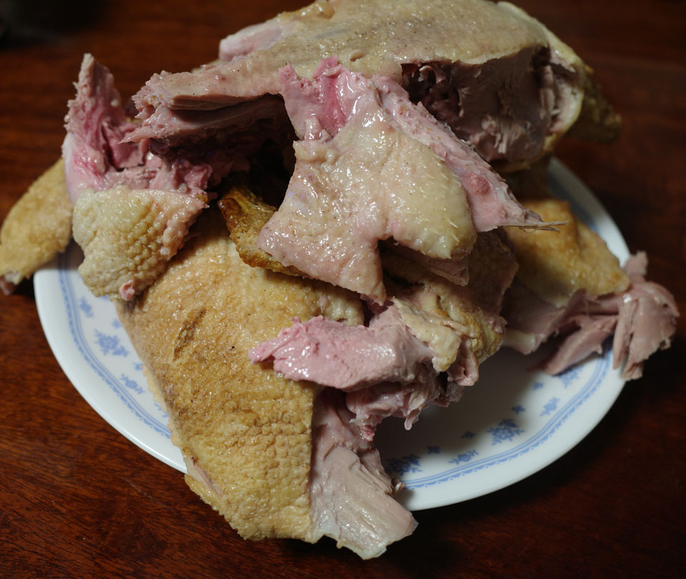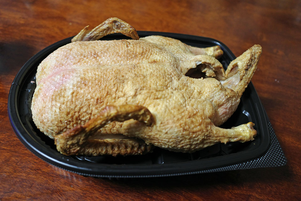 もちろん予約しておいたローストチキン、ではなくダックを持ち帰り。