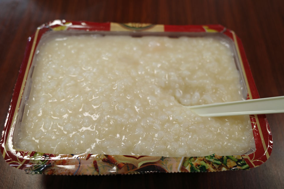 今回はお粥をいただきまして。エビと貝柱。
