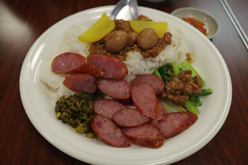 ご飯物。シャンチャンとかいうらしい、辛そうに見えるけど甘めの味のソーセージに肉味噌かな、なんとも家庭的な味。この文では間違いなくルーロー飯も美味しいでしょう、また行かねば。