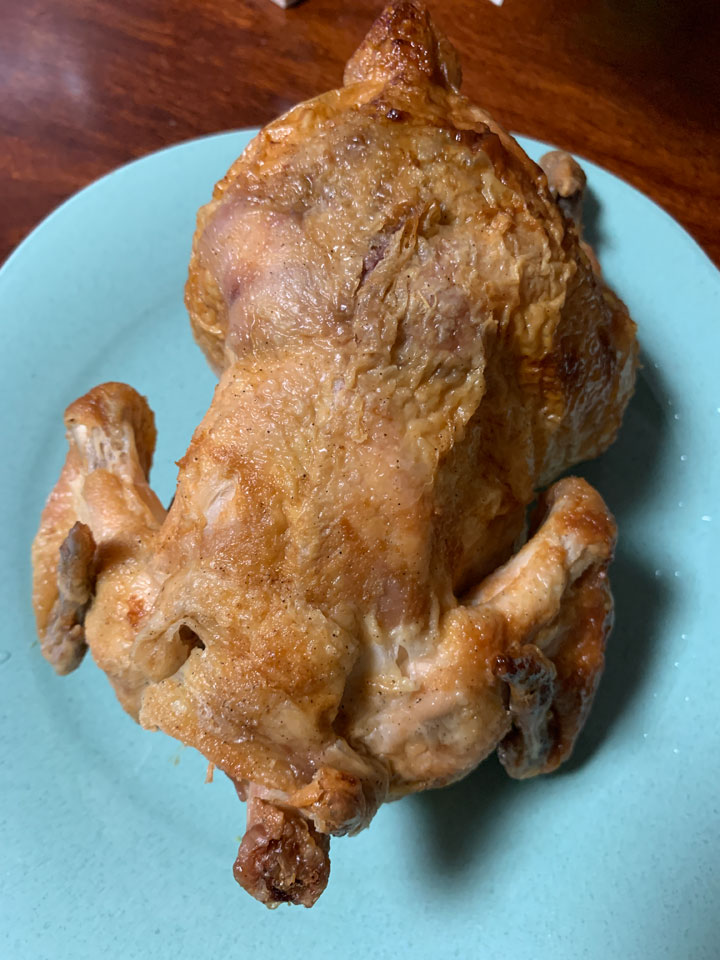 5連休初日、まだ土曜だから開いてるいつもの板橋の名店鳥新で連休中用に何か買っておこうと行くと、いつもはない丸焼きが普通に売ってるではありませんか。