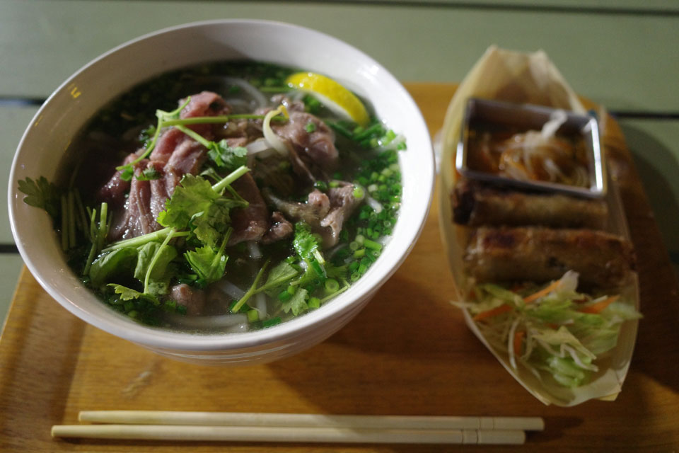 揚げ春巻き付きのセットで850円。屋上は隅の方に喫煙所もあって、いうことなし。