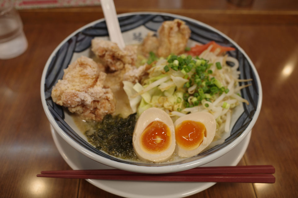 唐揚げも食べたい気分だったので、丁度いいメニュー親子ラーメンにしました。