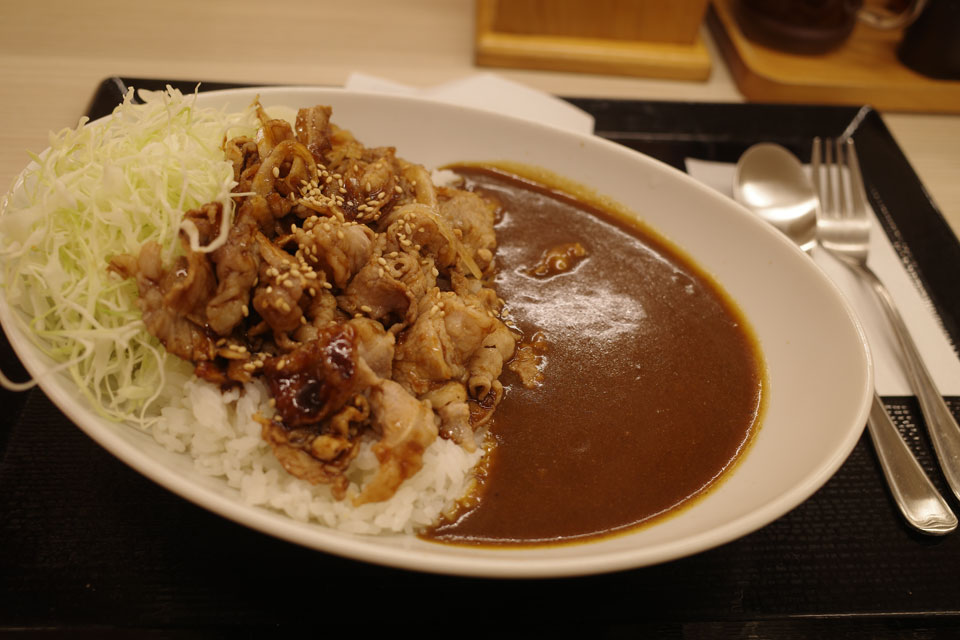 松屋すき家ココイチなどでカレーは普通、かつやでもカレーメニューありますが、もちろんカツカレー。カロリーくるよねー、とおもったてたところに生姜焼きカレーなるものが。