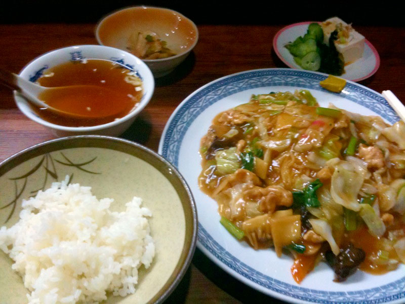 その頃よく食べたのが五目焼きそば定食かピーマン定食とメニュー書きにある、いわゆる青椒肉絲定食。