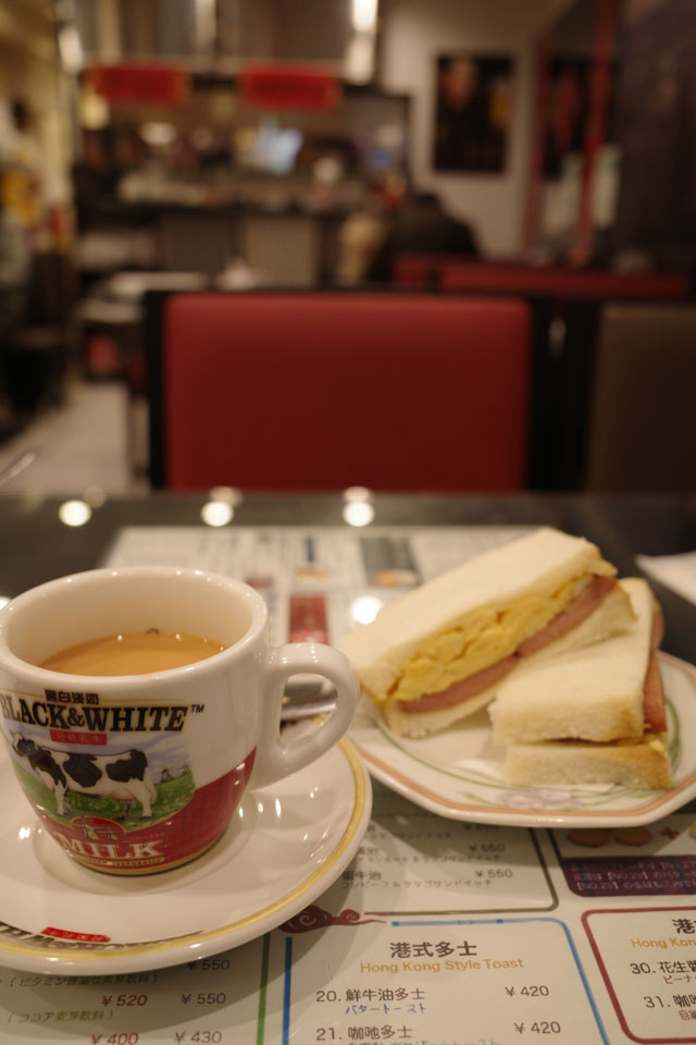ランチョンミートと卵のサンドイッチ。甘みはほぼつけてなくてちょっとしょっぱ目なのが美味しい。もちろん香港式ミルクティーとよくあいます。次回は香港式なフレンチトーストを頼まねば。この店池袋か十条辺りにあったら通うのになあ。新しく赤坂店出来たらしいのでその次辺りに是非。