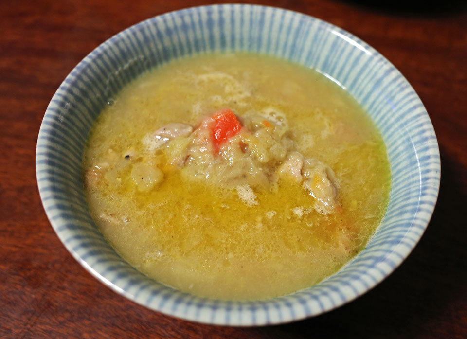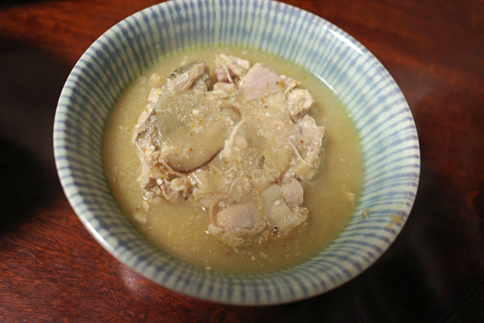 鳥のポトフ。見た目あまり変わりませんが、胡椒がよく効いたスープがメチャ旨。