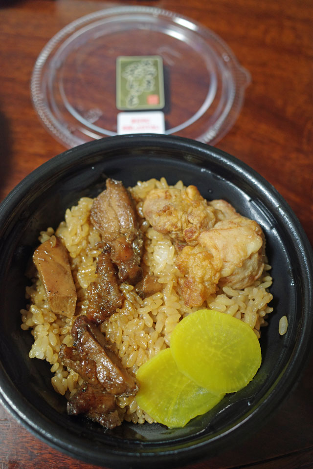 鶏肉のひつまぶし。ご飯に蒲焼きのタレ的なものを混ぜ、山椒を効かせたもの。