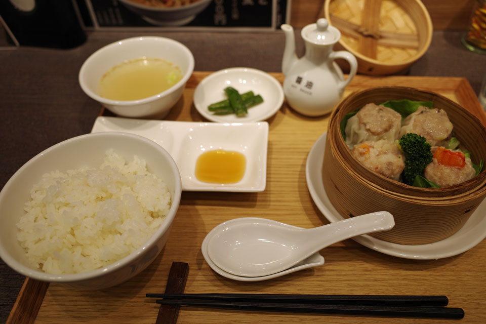 肉シュウマイとカニシュウマイ、二個ずつの定食をいただきました。どちらも美味しいけど特にカニはほんとにカニの風味がたっぷり。いい中華の店はスープが美味しい。胡瓜の漬物みたいのも、黒酢も美味しい。醤油が添えられてて、なくてもいいけど好みとしては肉シュウマイには醤油、かにシュウマイには黒酢が合う気がしました。ちょっと難しかったのがシュウマイ4つとご飯の食べる割合。ついシュウマイを早く食べてしまって。メニューには担々麺とシュウマイのセットもあったので、次利用するときはそっちにしてみようかと。