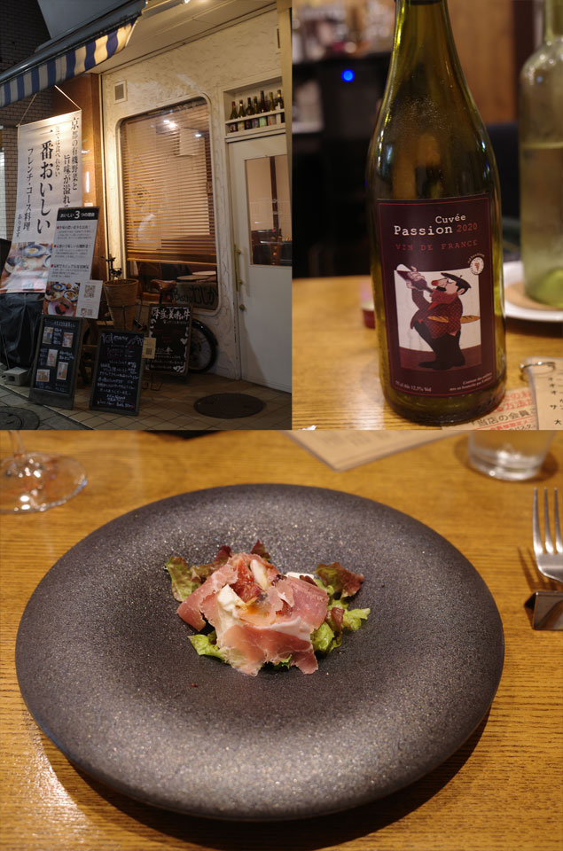 一番良く前を通ってコロナ禍のなかでテイクアウトなんどか試してた店に行ってみたらその日はランチのみ営業。では、と次に前を通ること多いのに入ったことなかったビストロむじかに。いくつか料理頼んでそれに合うワインを選んでもらいました。全部飲んじゃったあとなんでボトルだけだけど。