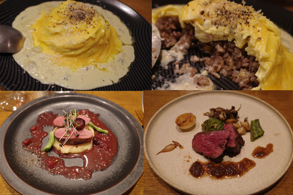 鴨のローストにはベリーのソース、ハラミステーキは中が柔らかすぎるくらい。