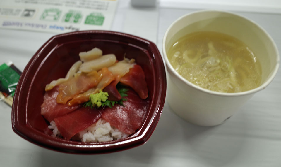 貝とマグロ丼に貝出汁うどんを食べました。とくに貝出汁が美味しかったなあ。