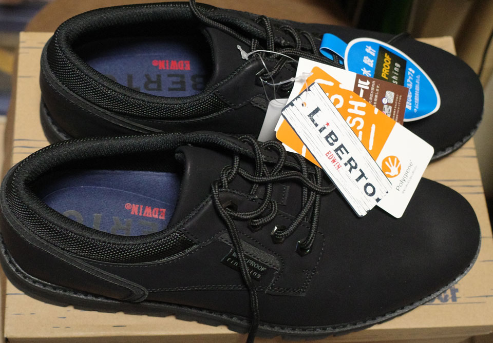 エドウィンの靴って初めて。やや長さは余るけど幅、高さがちょうどよく、軽めで耐水耐滑性能もいいらしいのでこれに。半日歩いた感じでは良かったです。あとは雨の日だなあ。